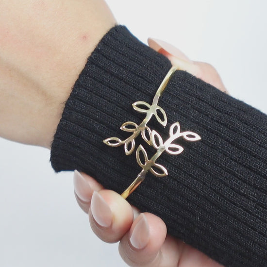 Leaf Motif Brass Adjustable Bracelet - Open cuff bracelet with a delicate leaf design—lightweight and nature-inspired.