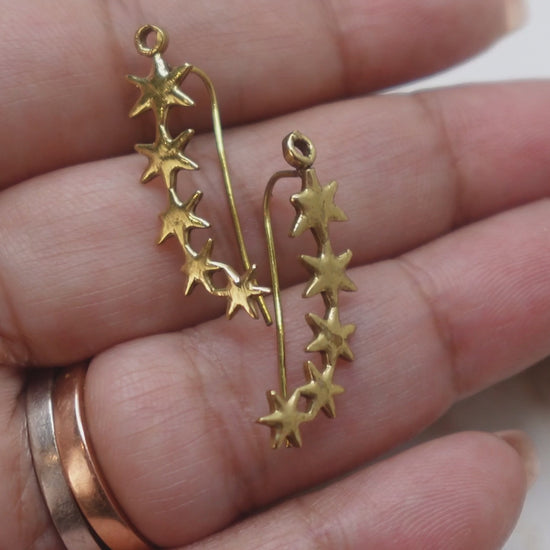 Celestial Garden Brass Ear Climber - Starlit Path, Wildflower Trail, Golden Vine.