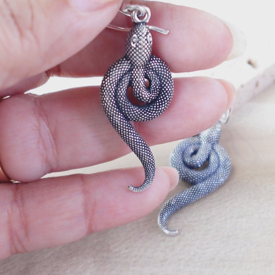 Make a fierce style statement with these intricately coiled brass snake earrings, designed to captivate with their elegant serpentine shape and fine texture. Featuring a unique knotted form, these dangles blend edgy symbolism with graceful curves, perfect for those who love bold, artistic jewelry.